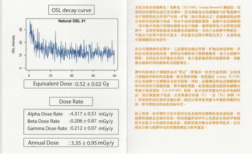 年代測定報告:本次分析採用熱釋光/光釋光測讀儀,對第四紀時期樣品進行髮光測年。髮光現象是由電離輻射與礦物晶格中電子陷阱的相互作用産生的。礦物(如石英或長石)的晶格結構由帶正電和負電的離子組成,但由於雜質或輻射損傷,晶格中會出現缺陷,其中缺少負離子的部位被稱爲電子陷阱。被俘獲的電子會停留在陷阱中,直到受到熱能或光能激髮而被釋放。當電子從陷阱中釋放後,可能會與價帶中的空穴複合,並在複合過程中釋放出光子,從而形成可被測量的髮光信號